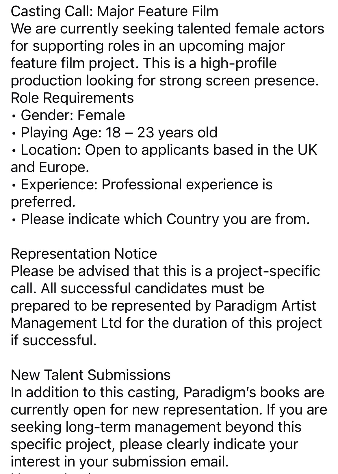 If you do see any castings on social media that we haven’t listed, please help your fellow artists by sending them to us so we can list them. (They must have email addresses to apply to)