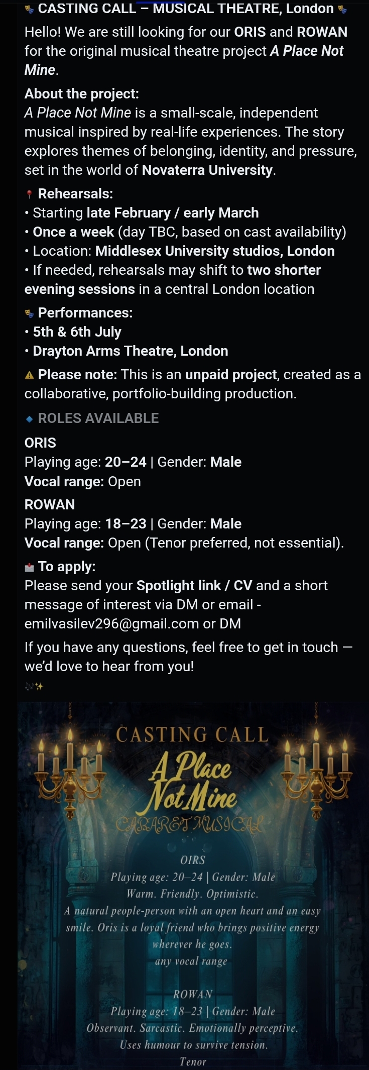 If you do see any castings on social media that we haven’t listed, please help your fellow artists by sending them to us so we can list them. (They must have email addresses to apply to)