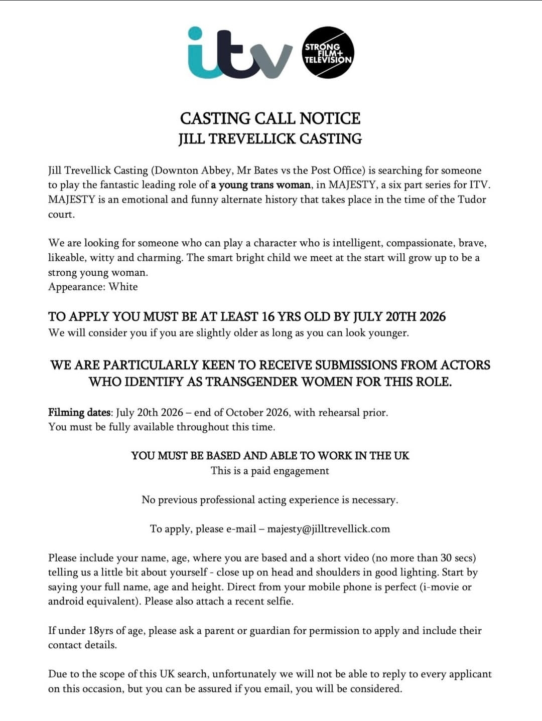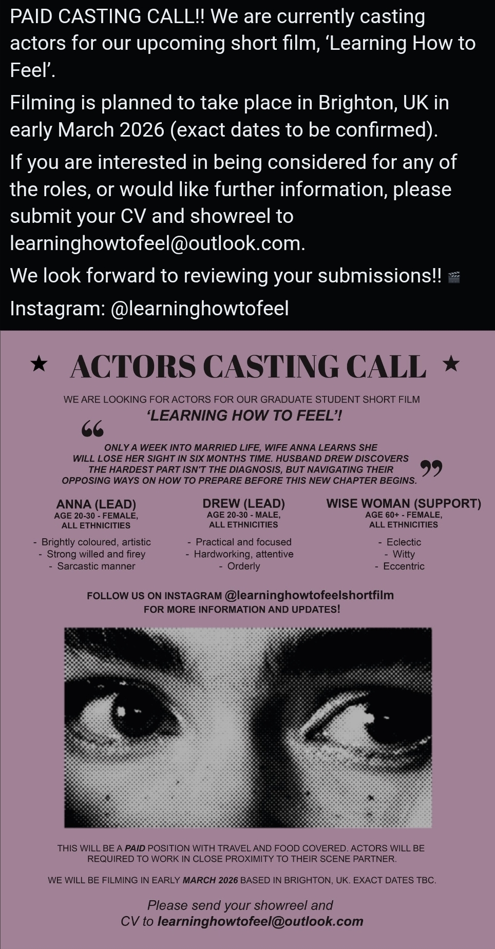 Aside from the castings that will come in via your notifications from Casting Directors, these are castings that we find around social media. We have put them below and have made it easy for you to apply for them. This is to save you lovely bunch from having to search around social media all day for castings.
